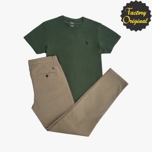 Conjunto de pantalon chino elastico beis tostado camiseta verde SYC Factory Original