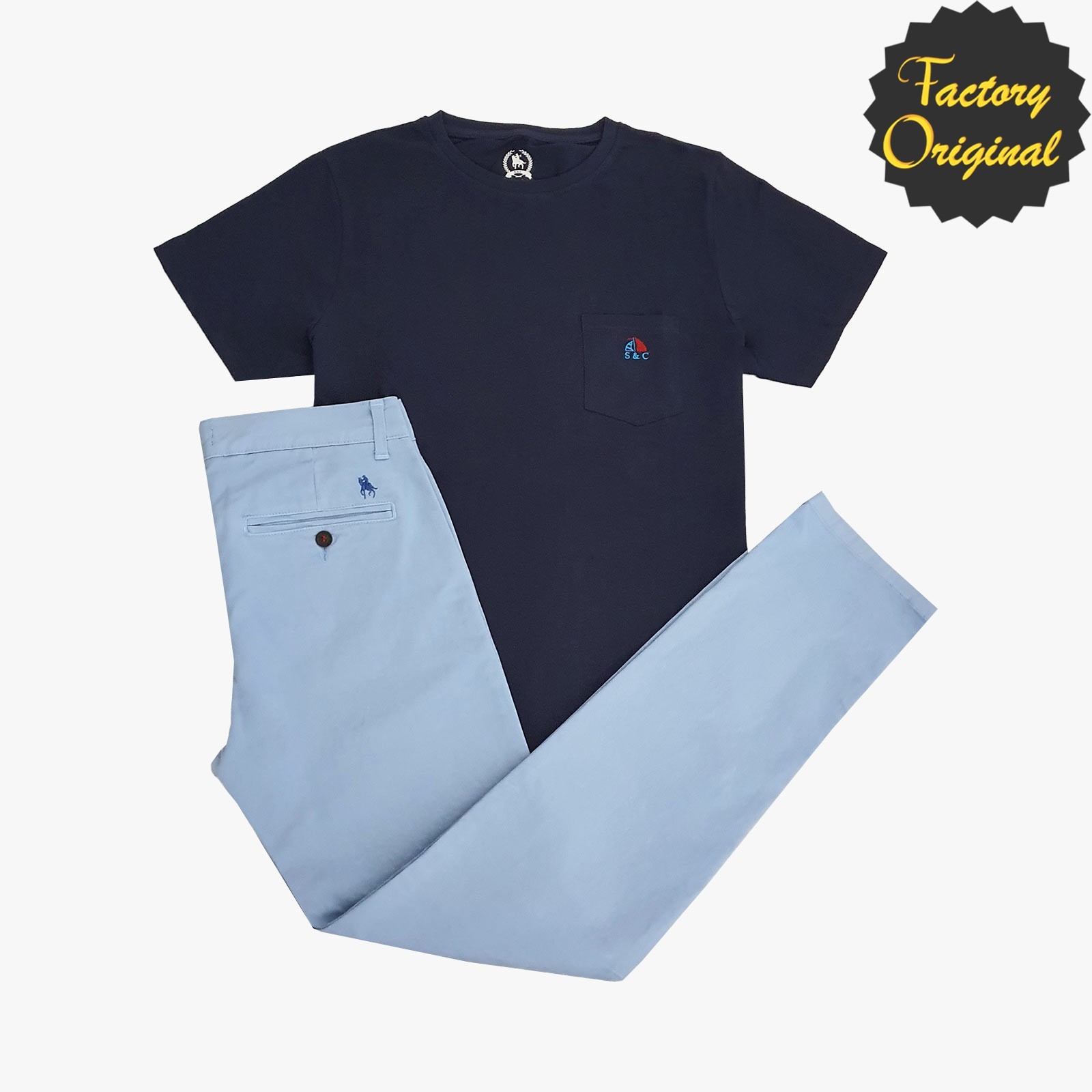 Conjunto de pantalon chino elastico celeste camiseta marino SYC Factory Original