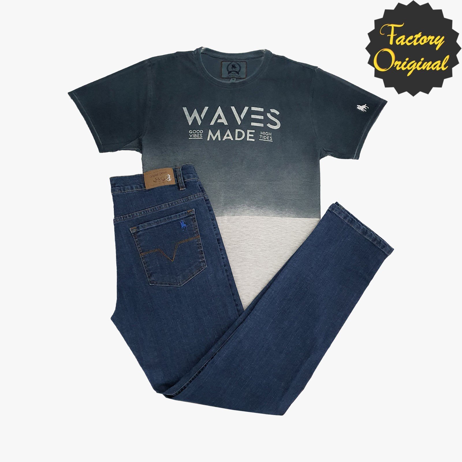 Conjunto de pantalon vaquero piedra camiseta bicolor SYC Factory Original