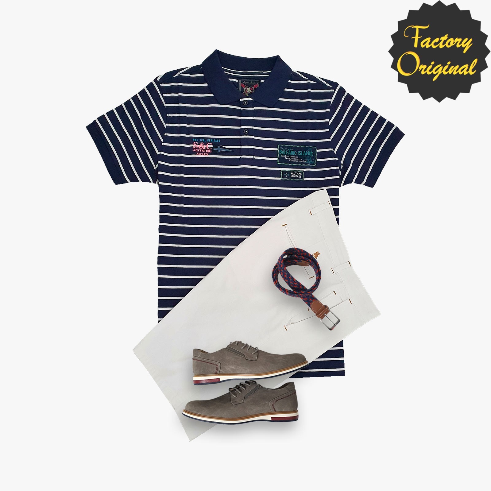 Pack Polo Fantasia rayado marino Bermuda blanco zapato gris de SYC Factory Original