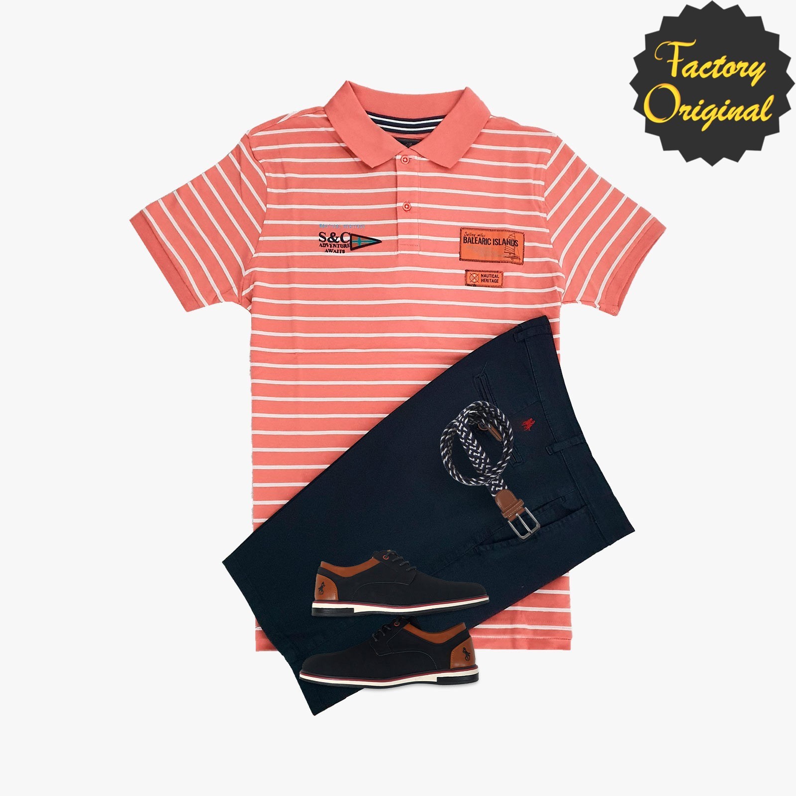 Pack Polo Fantasia rayado rojo Bermuda marino zapato negro de SYC Factory Original