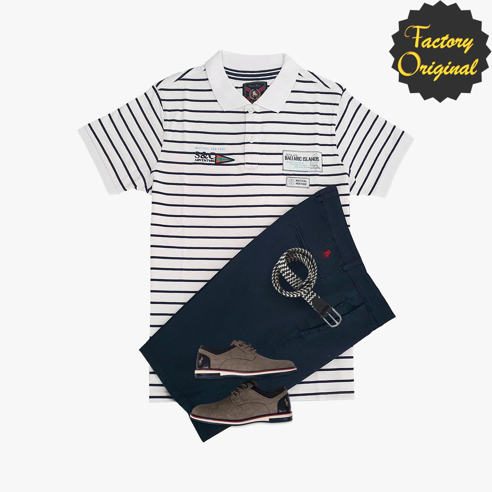 Pack Polo Fantasia rayado blanco Bermuda marino zapato gris de SYC Factory Original
