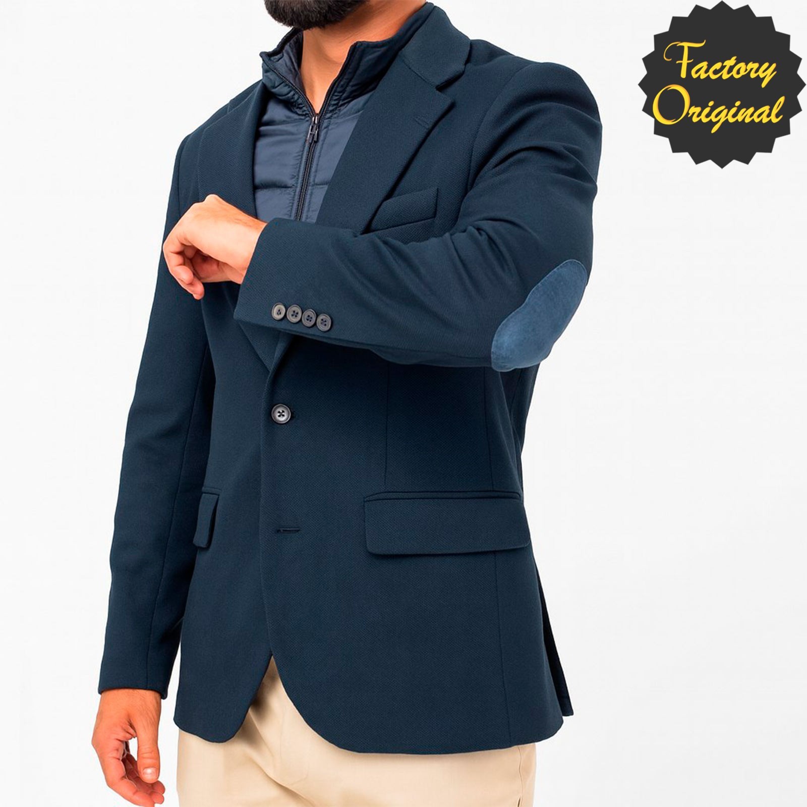 Americana con coderas y forro interior tipo chaleco para ofrecerte la máxima comodidad y abrigo en esta temporada otoño-invierno.