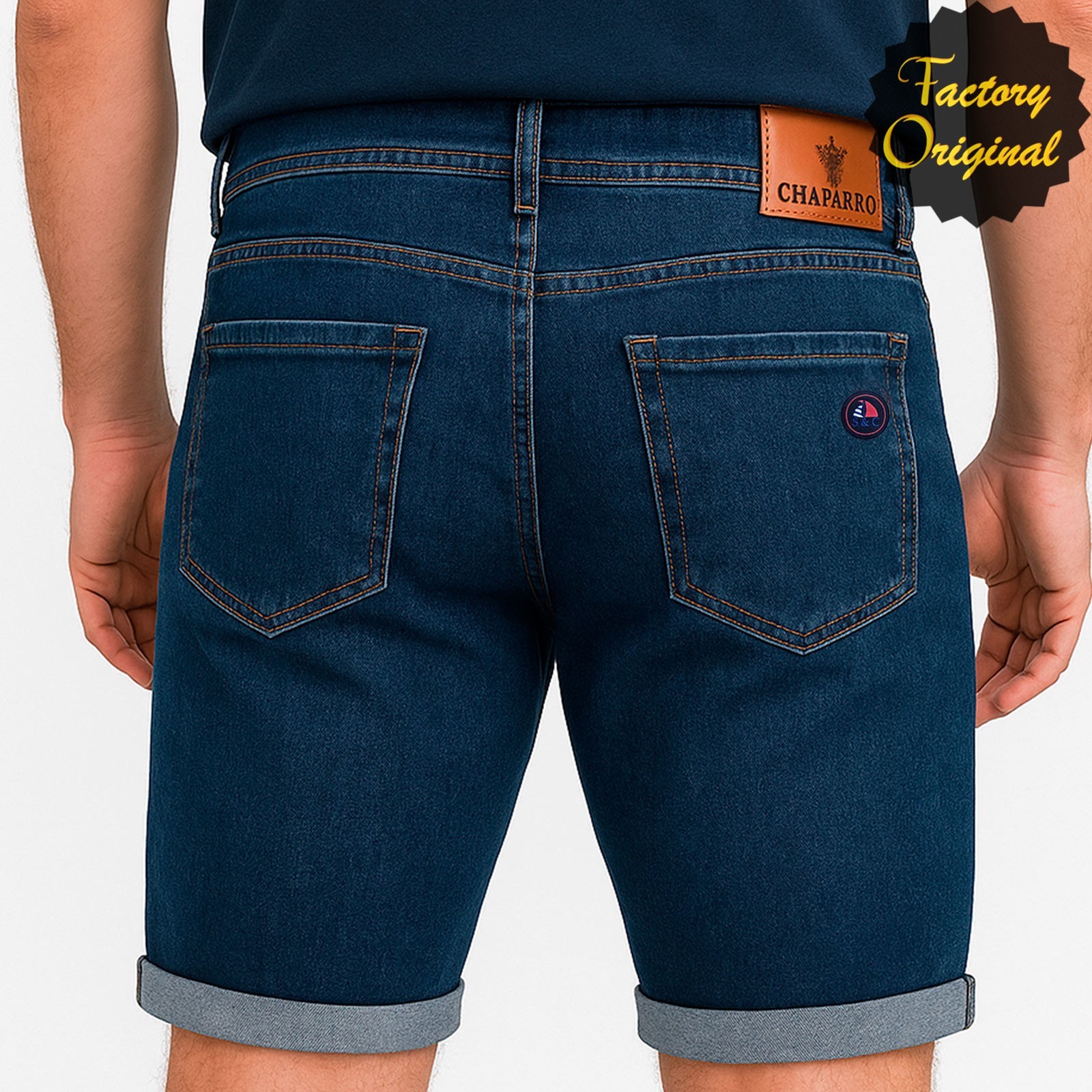 Bermuda chaparro Barco logo vaquero oscuro SYC factory original