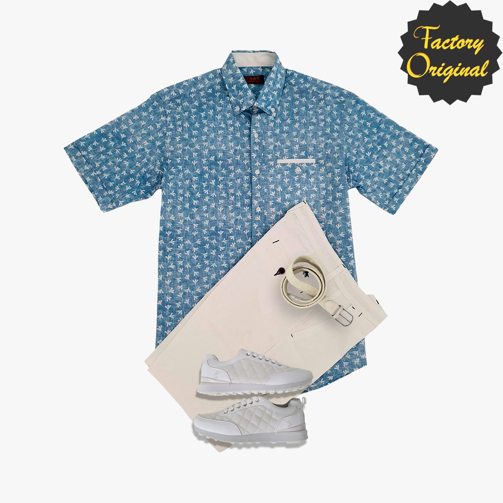 Pack camisa hombre manga corta flowers azul Bermuda blanca deportivo nude blanco SYC Factory Original