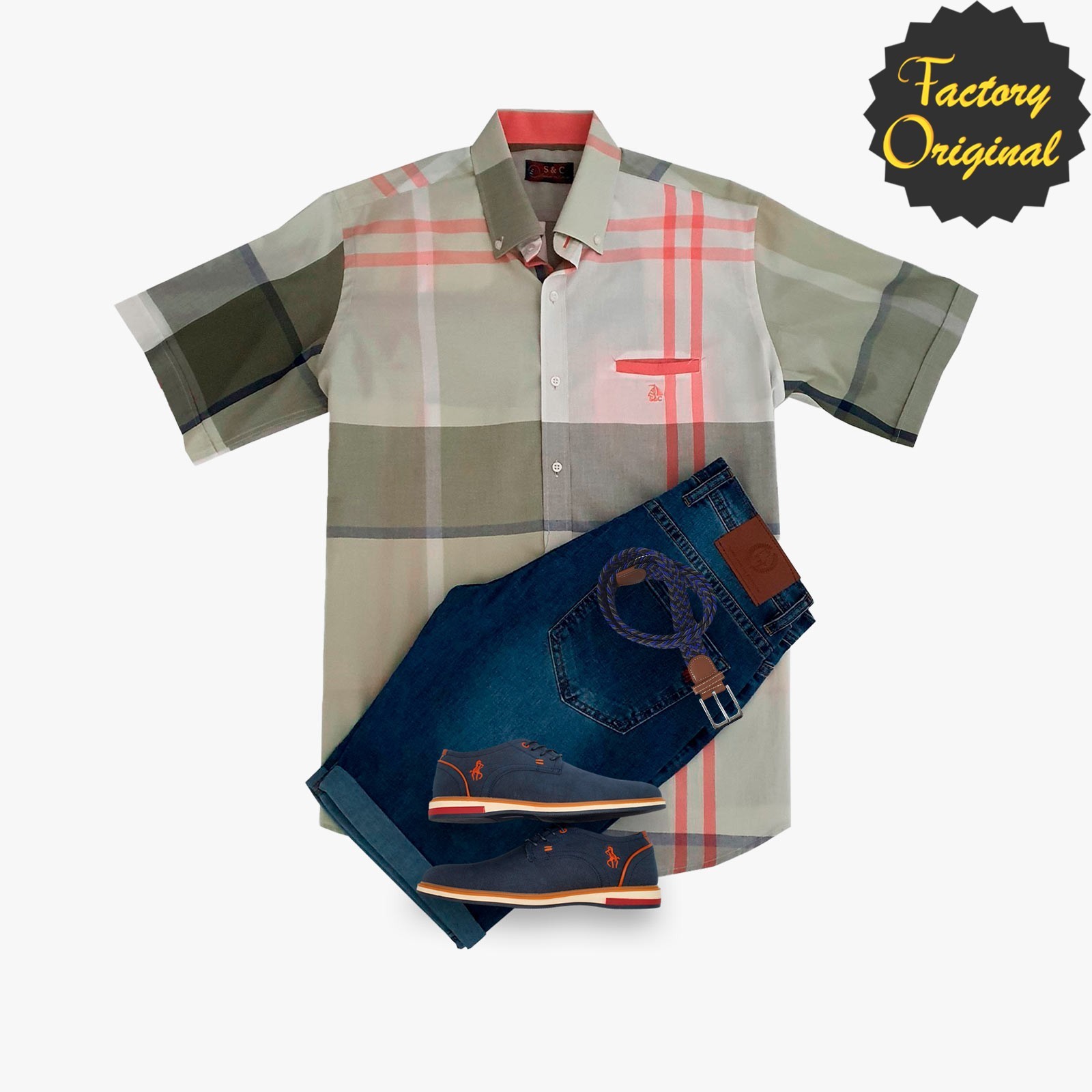 Camisa hombre barco manga corta modelo cuadro ancho bicolor SYC Factory Original