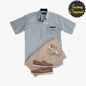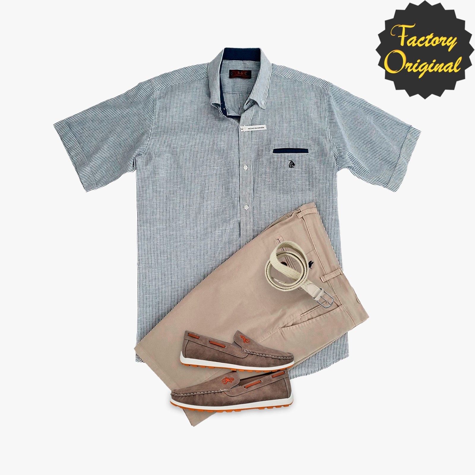 Pack camisa hombre barco modelo universitario marino Bermuda beis tostado nautico pluma gris SYC Factory Original