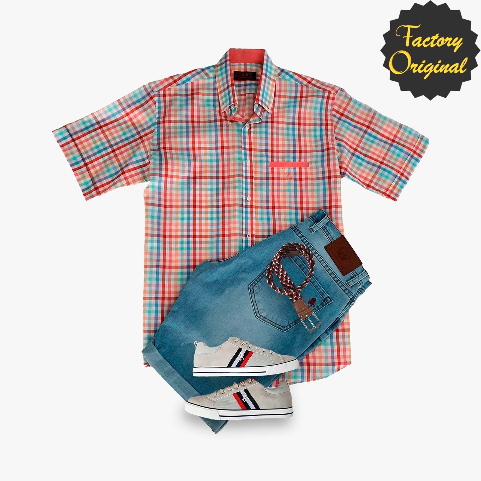 Pack camisa hombre modelo cuadro bicolor Bermuda barco vaquera clara deportivo street perla SYC Factory Original