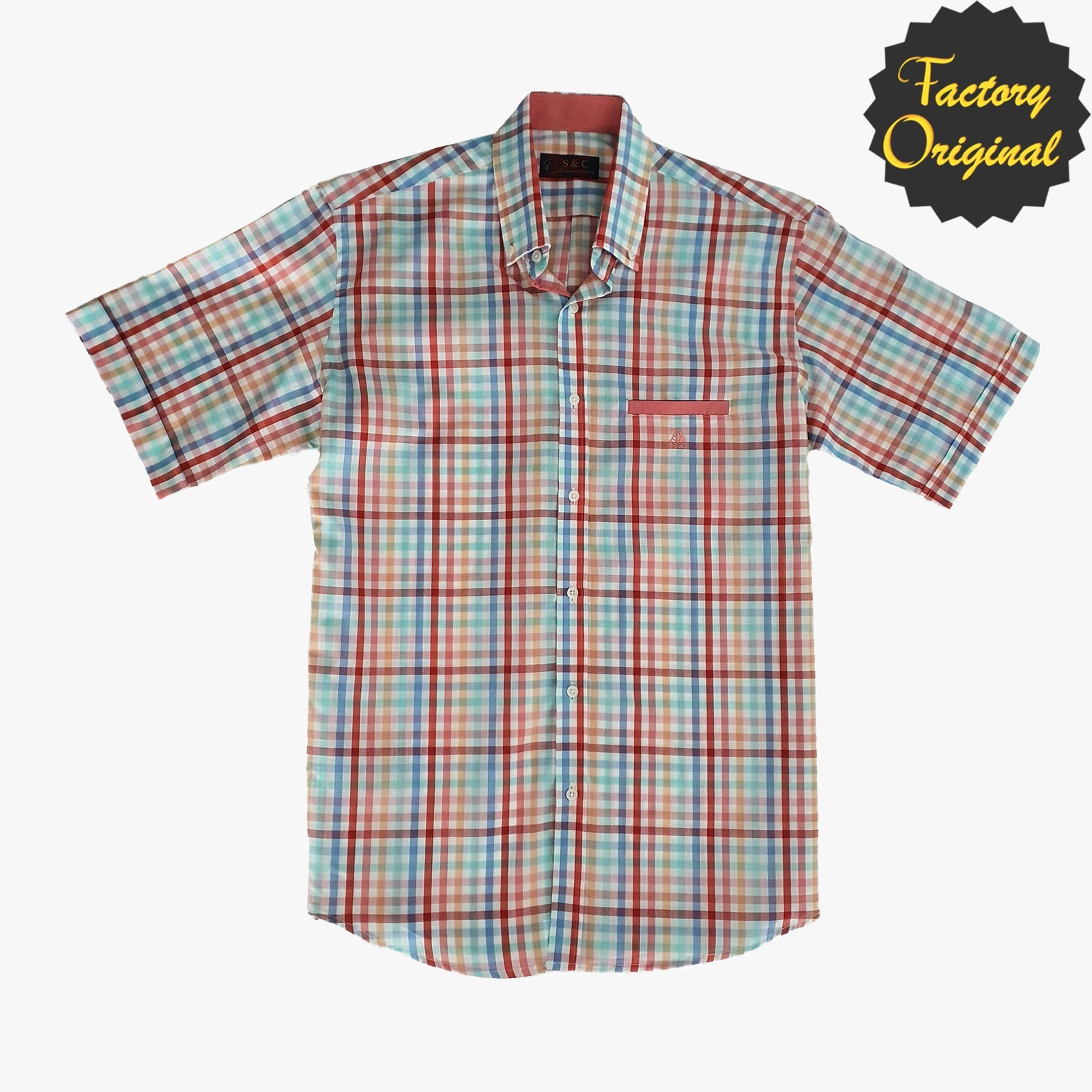 Camisa hombre manga corta modelo cuadro bicolor SYC Factory Original