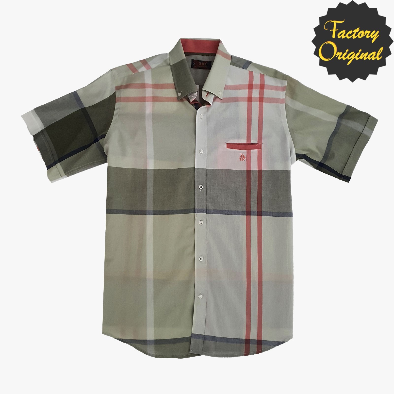 Camisa hombre barco manga corta modelo cuadro ancho bicolor SYC Factory Original