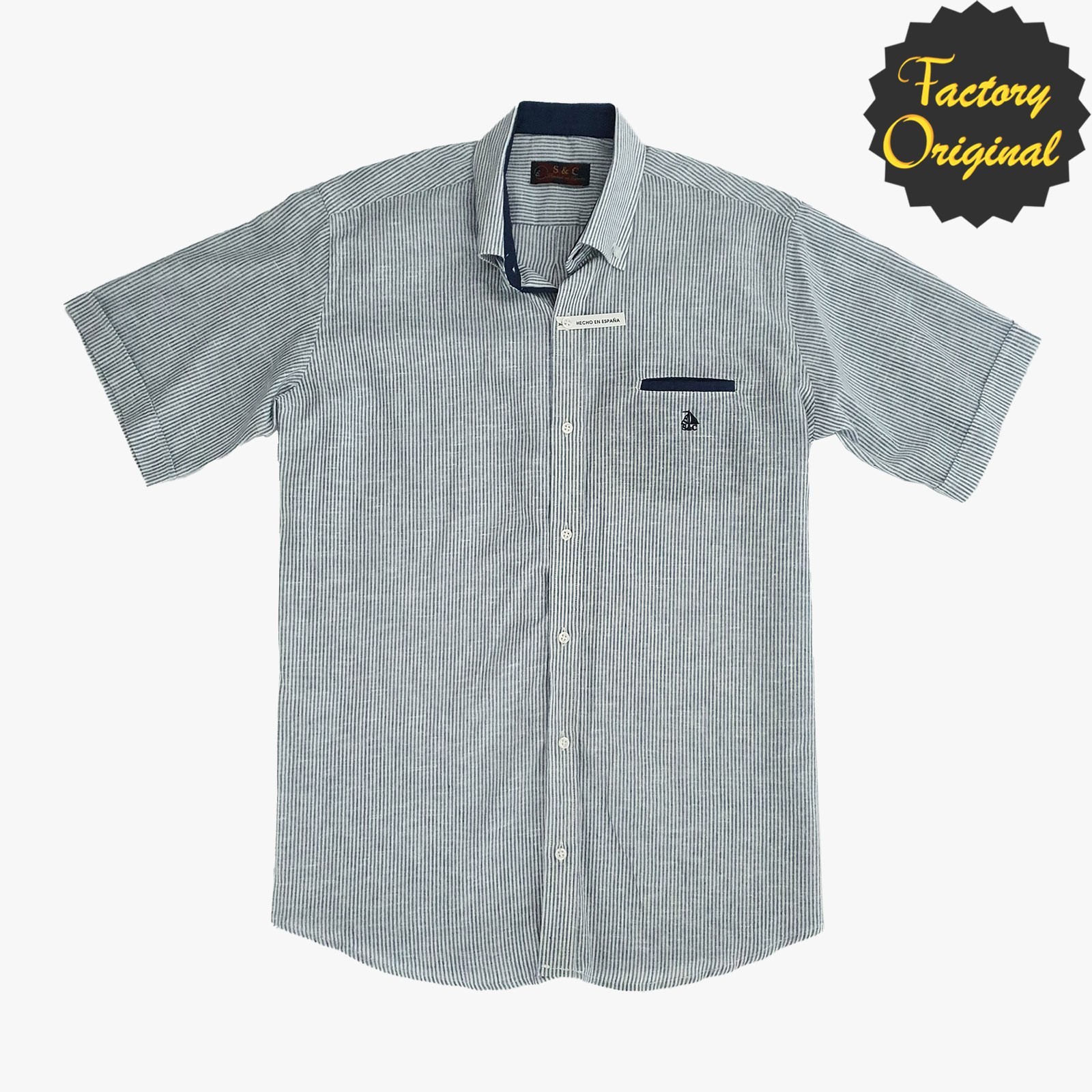 Camisa hombre barco manga corta modelo universitario marino SYC Factory Original