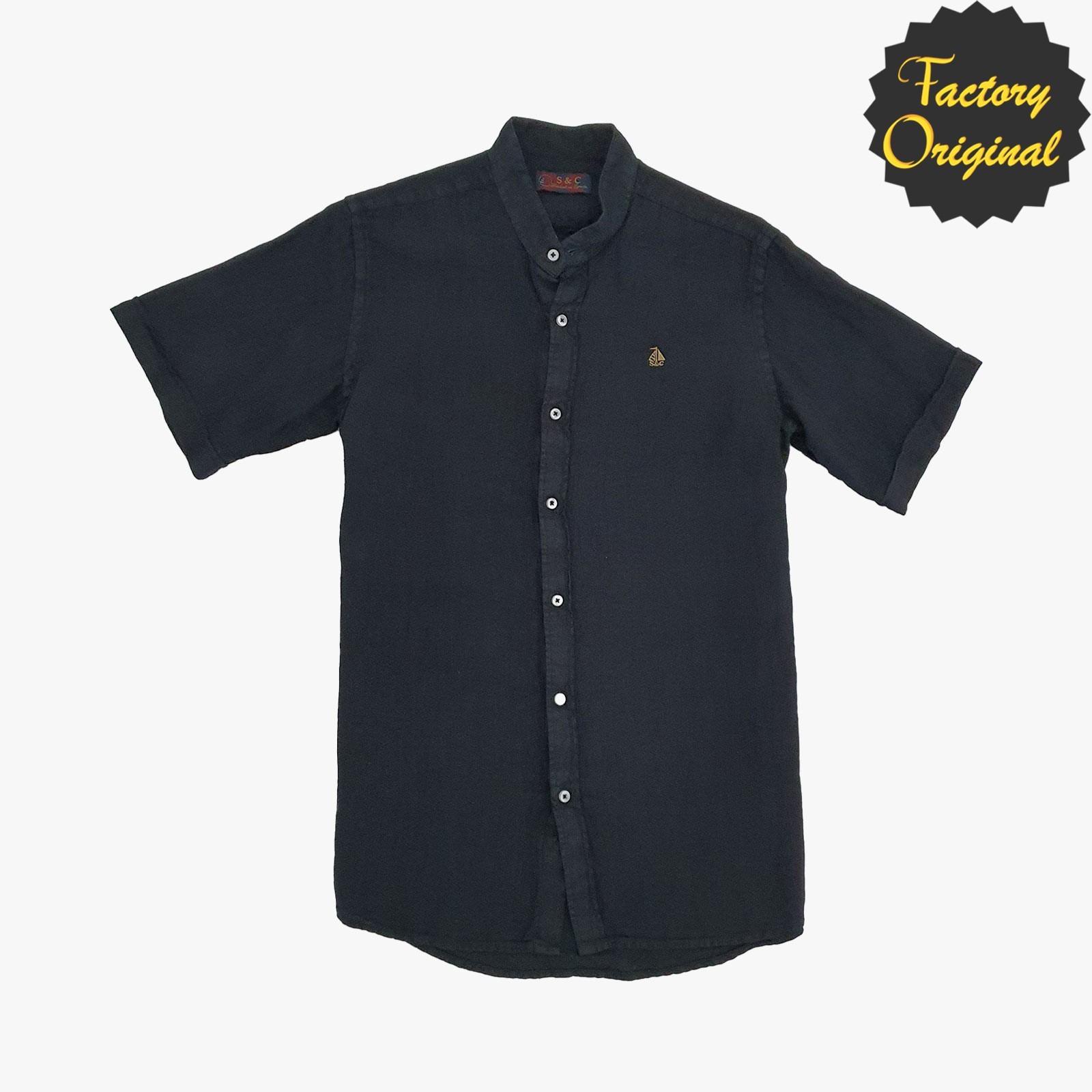 Camisa hombre manga corta lino modelo Vértice marino cuello mao SYC Factory Original