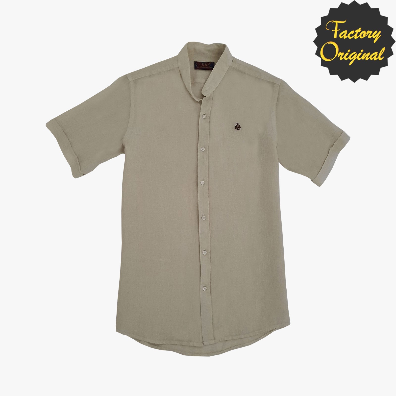 Camisa hombre manga corta lino modelo Vértice beige arena SYC Factory Original