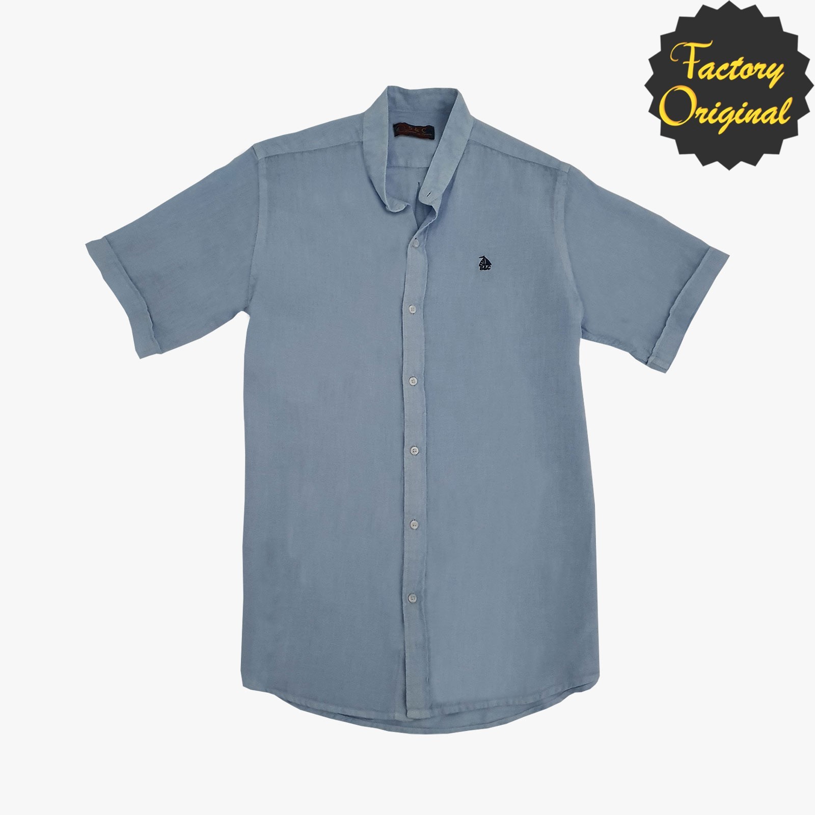 Camisa hombre manga corta lino modelo Vértice azul SYC Factory Original