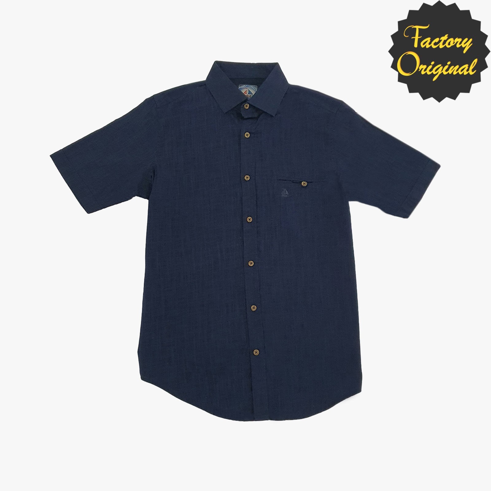 Camisa hombre manga corta tipo lino modelo Serenidad azul oscuro SYC Factory Original
