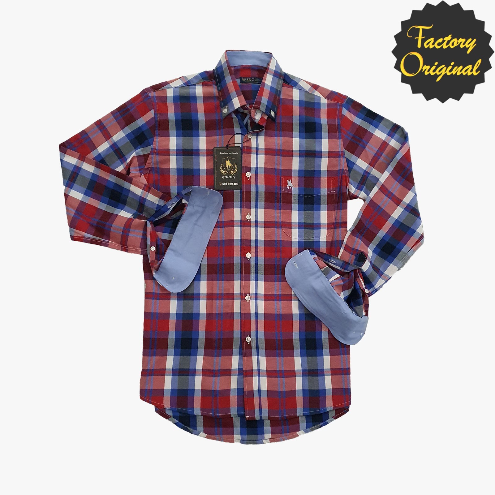 Camisa hombre modelo cuadrante azul y rojo SYC Factory Original