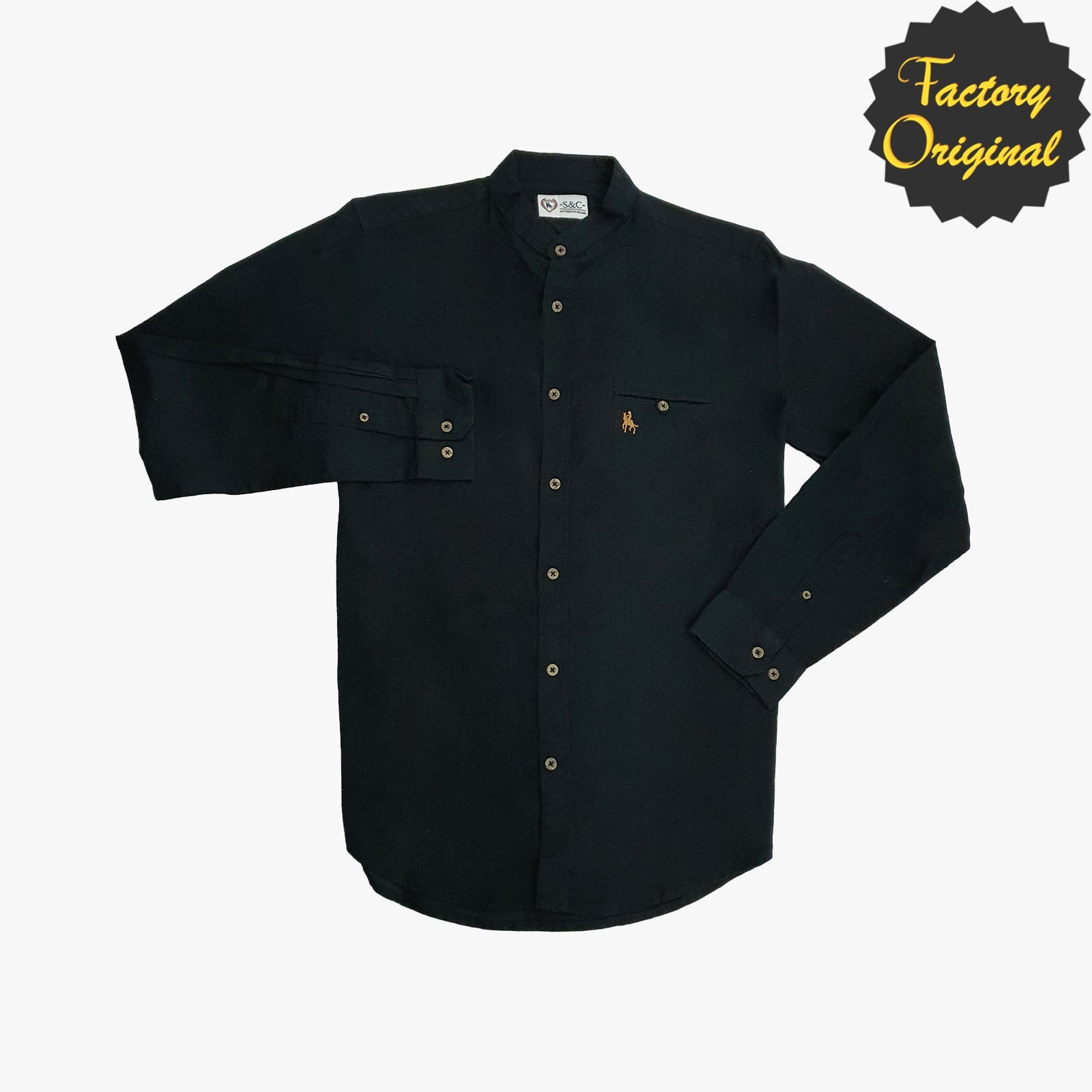 Camisa cuello mao Hombre tipo lino NEGRO SYC FACTORY ORIGINAL