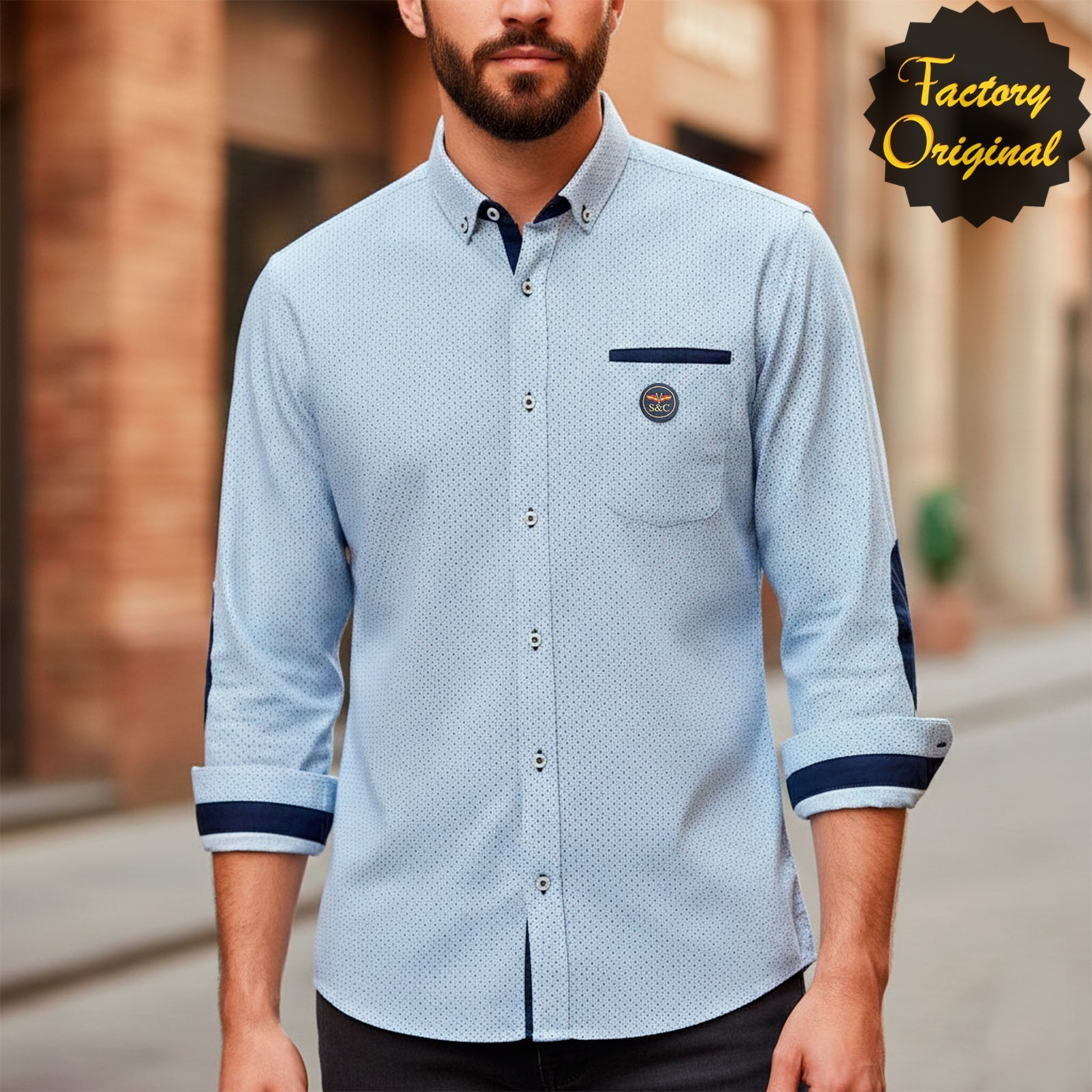CAMISA HOMBRE FANTASIA MARINO CON CODERAS DE SYC FACTORY ORIGINAL