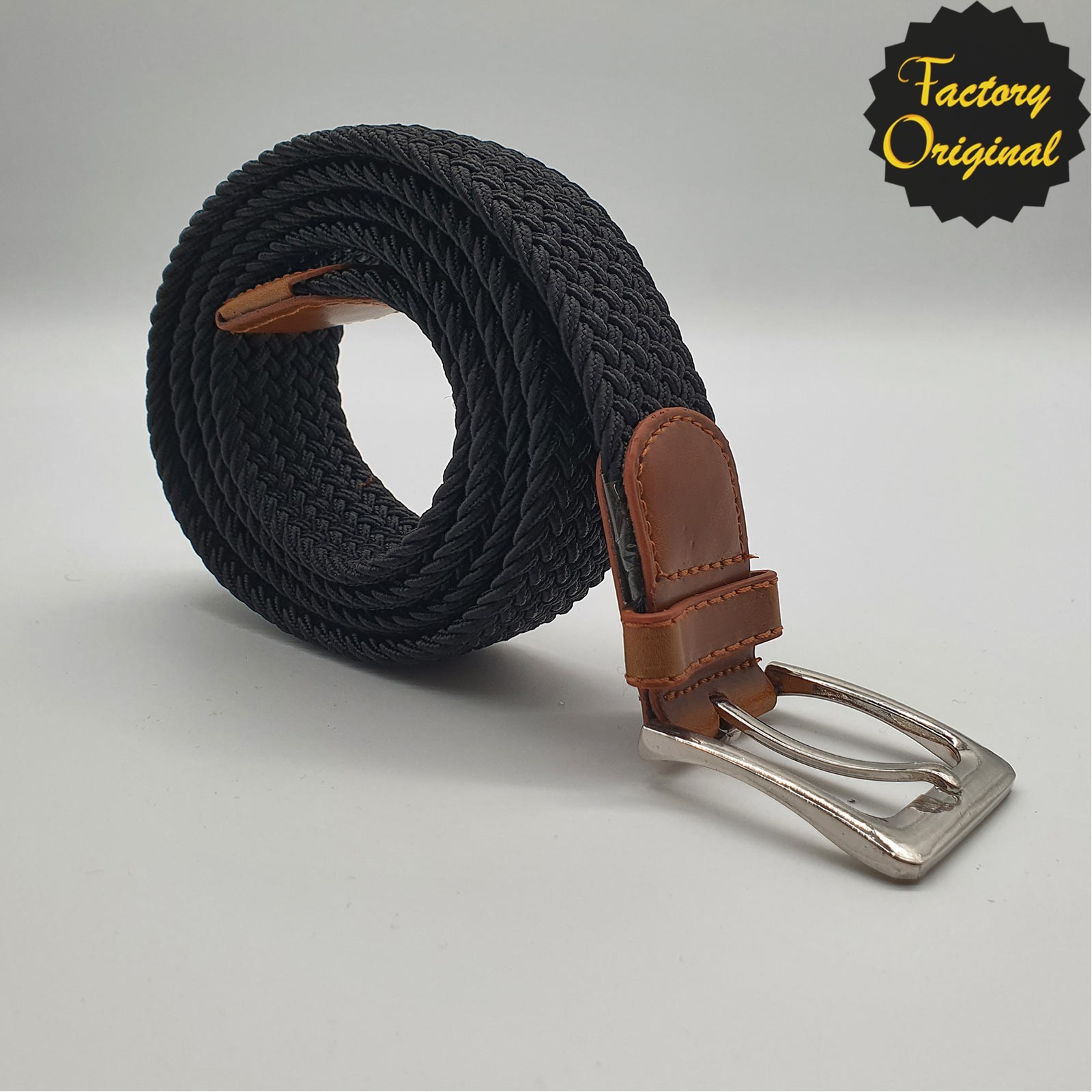 Cinturón elástico modelo liso negro con marron SYC FACTORY ORIGINAL
