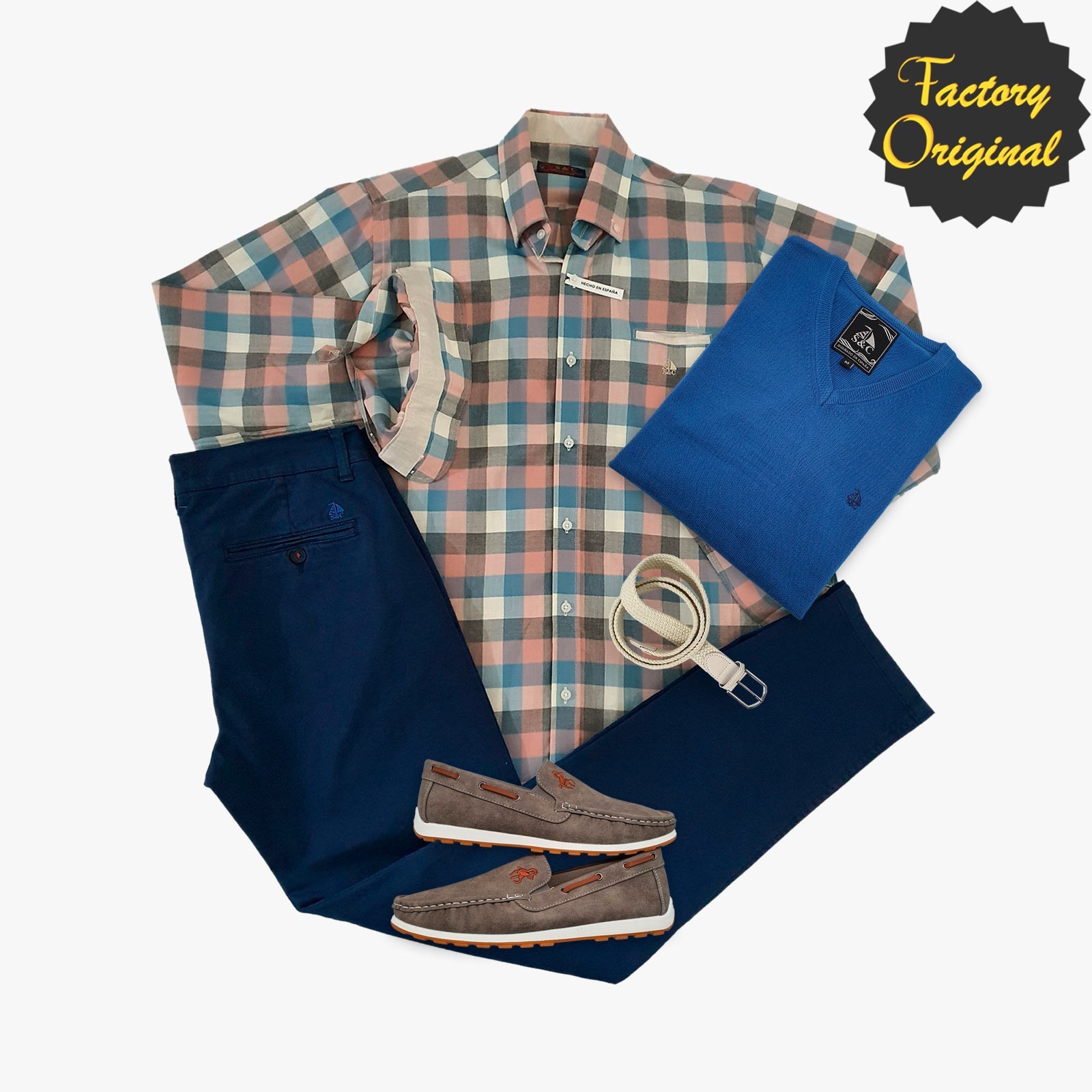 Camisa Hombre barco binary tricolor pantalon chino barco azul royal Jersey barco azul royal nautico pluma gris SYC FACTORY