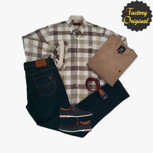 Camisa Hombre barco modelo binary beis pantalon vaquero oscuro Jersey barco beis tostado mocasin negro SYC FACTORY