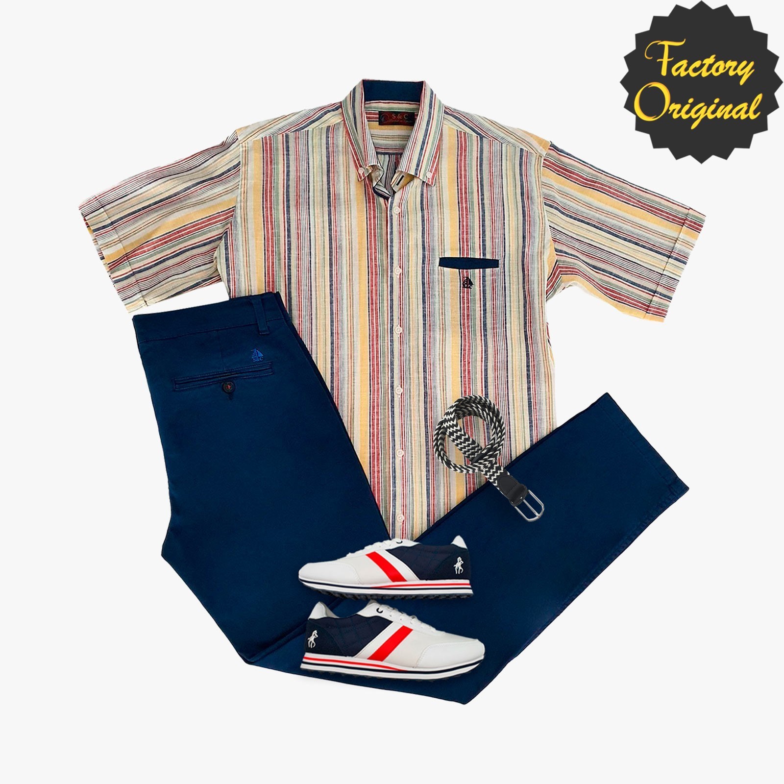 Pack camisa M.C modelo holidays amarillo chino barco azul royal deportivo franjas SYC Factory Original