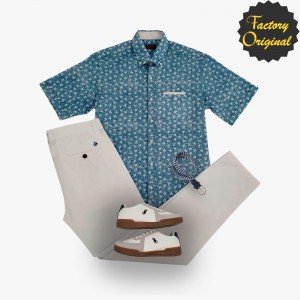 Pack camisa M.C modelo flowers azul chino barco blanco deportivo basic black horse SYC Factory Original