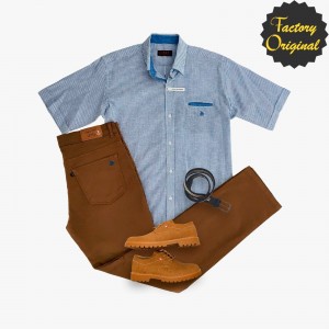 Pack camisa M.C modelo universitario azulón pantalón 5 bolsillos barco camel mocasín premium high camel SYC Factory Original