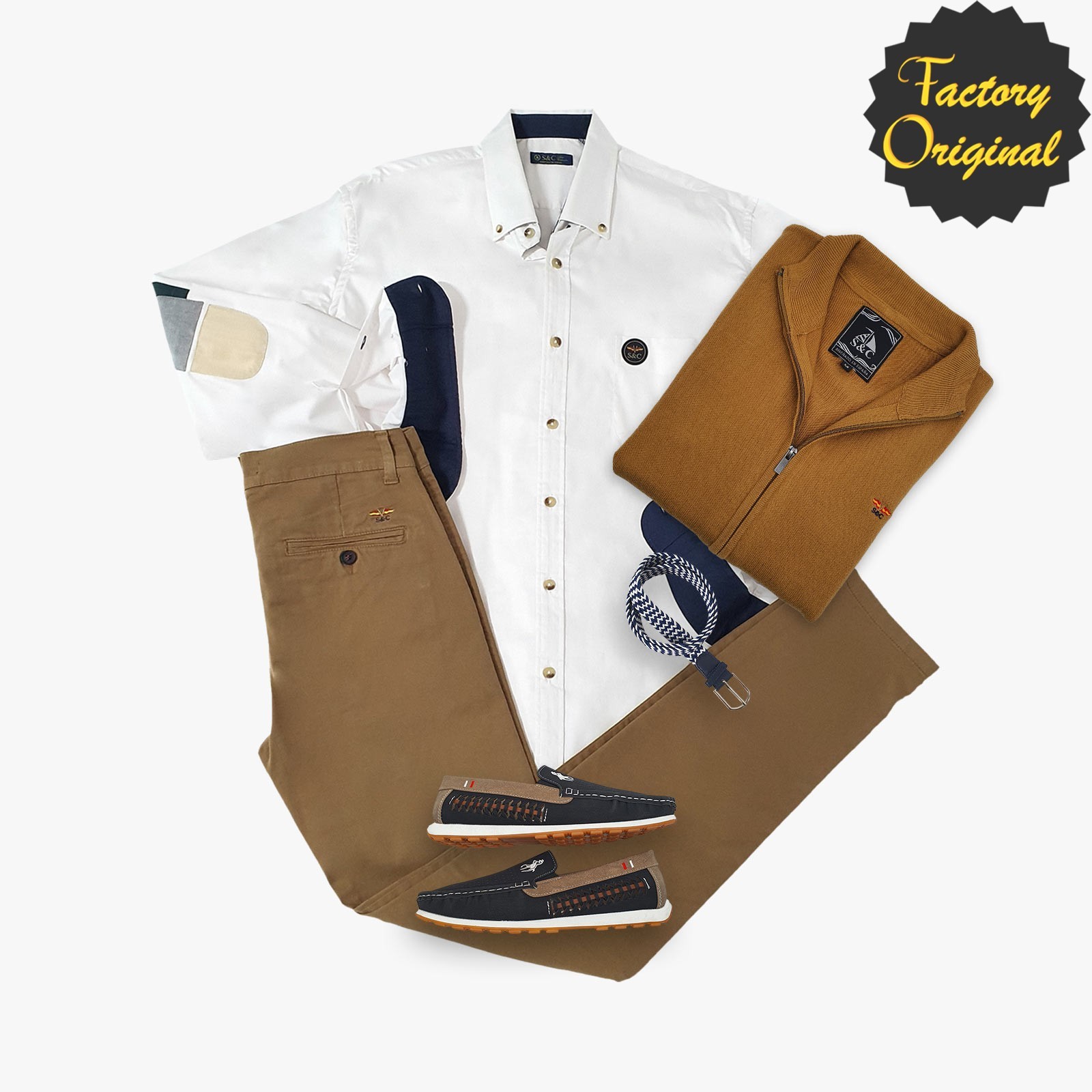 Pack Camisa patriota blanco multicoderas pantalon chino patriota camel rebeca patriota mostaza nautico airy negro y camel