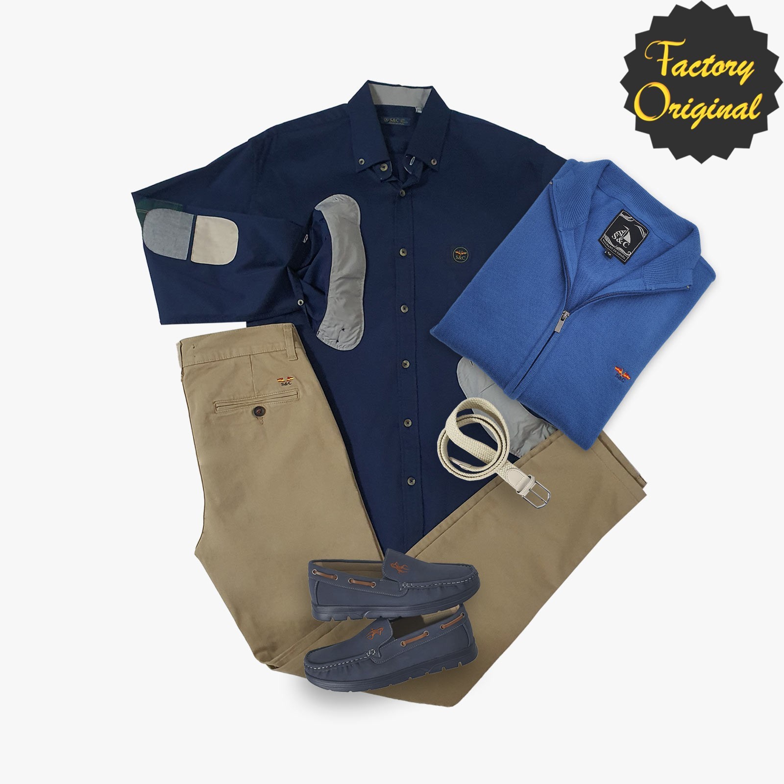 Pack Camisa patriota marino multicoderas pantalon chino patriota beis tostado rebeca patriota azul royal nautico marino