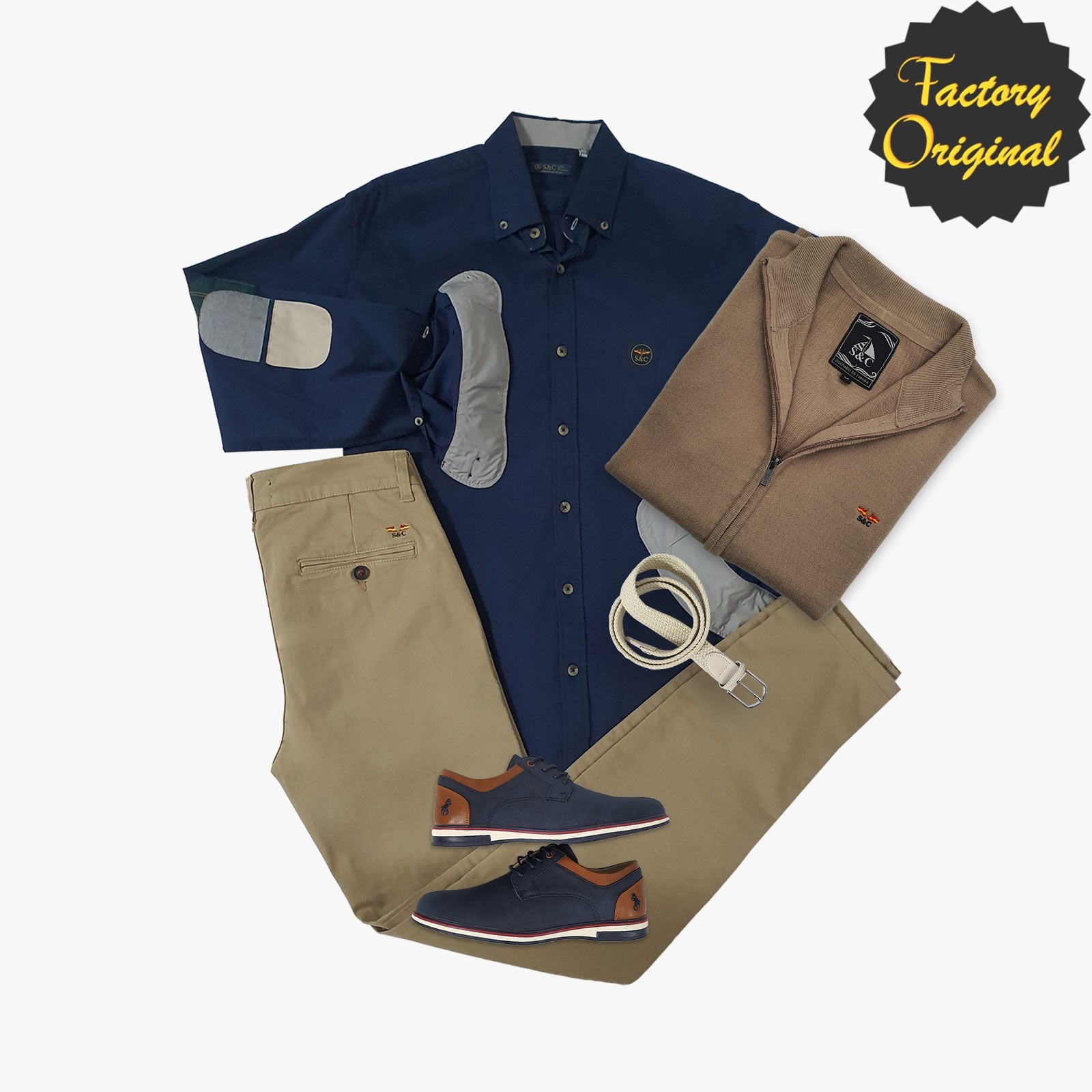 Pack Camisa patriota marino multicoderas pantalon chino patriota beis tostado rebeca patriota beis tostado mocasin perry marino