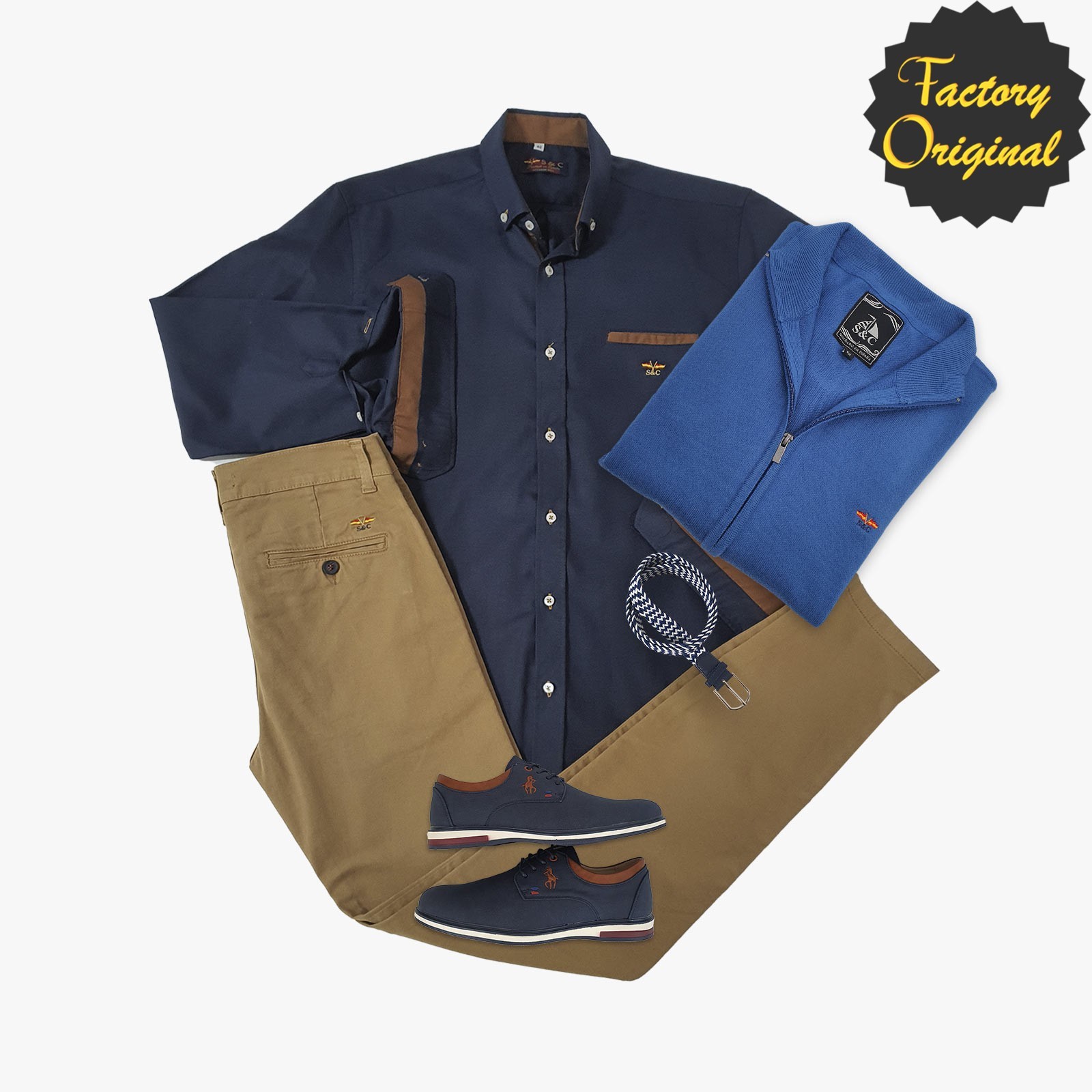 Pack Camisa patriota marino softi pantalon chino patriota beis tostado rebeca patriota azul royal mocasin estandar marino