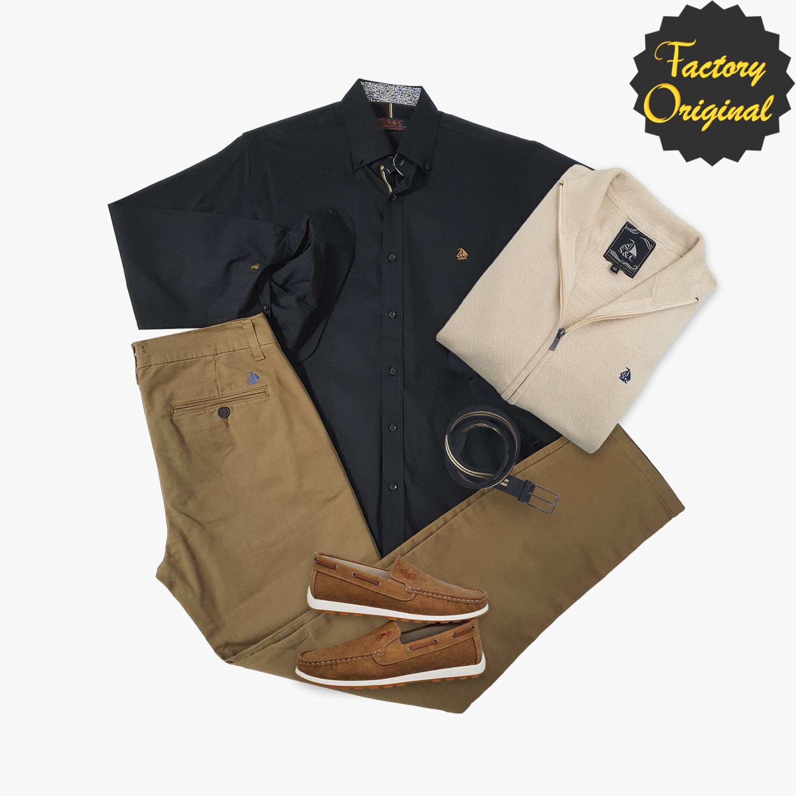 Pack Camisa barco negro antonio pantalon chino barco camel rebeca barco beis nautico pluma camel