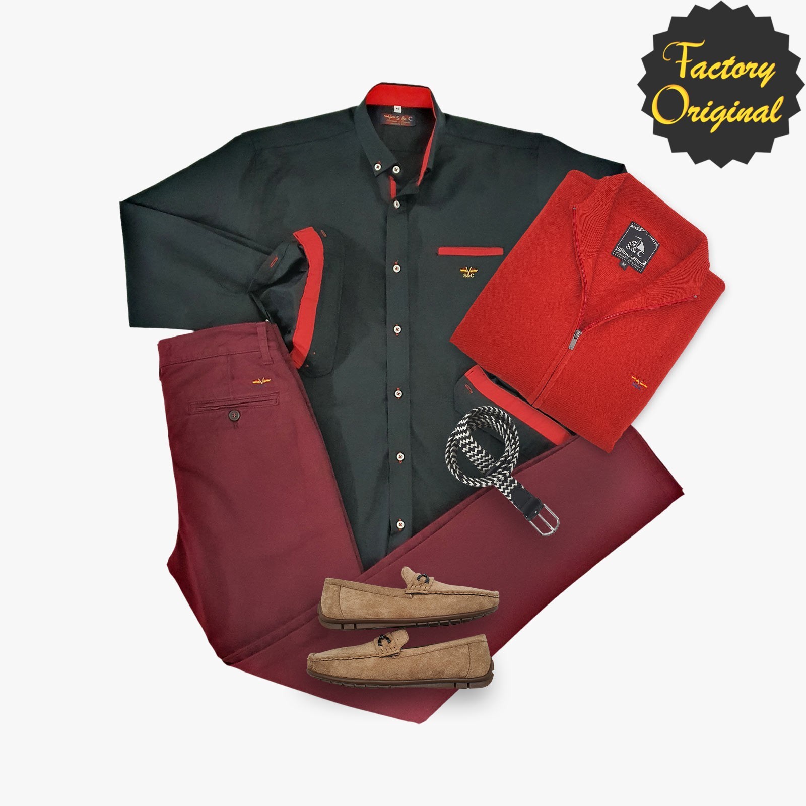 Pack Camisa patriota estandar negro pantalon chino patriota granate rebeca patriota rojo nautico infante beis