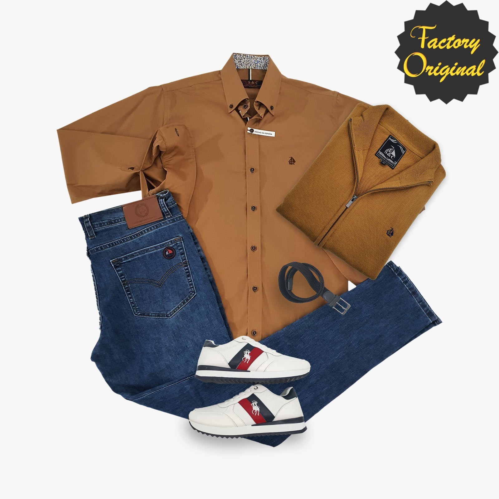 Pack Camisa barco estandar marron pantalon barco ibiza rebeca barco mostaza deportivo nyck blanco