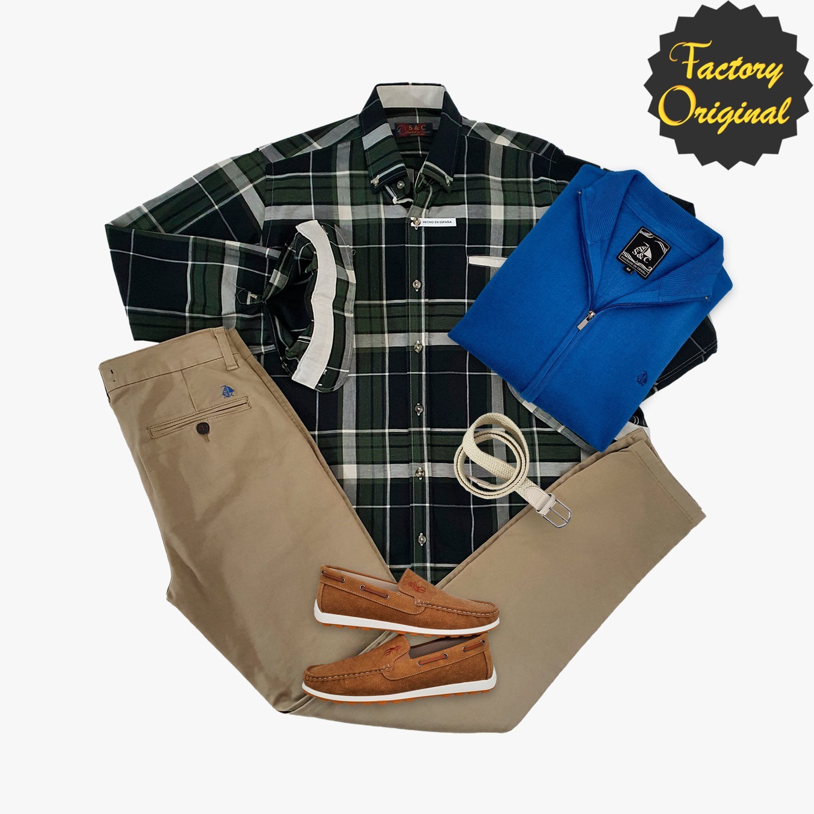Pack Camisa barco modelo ignite pantalon chino barco beis rebeca barco azul royal nautico pluma camel