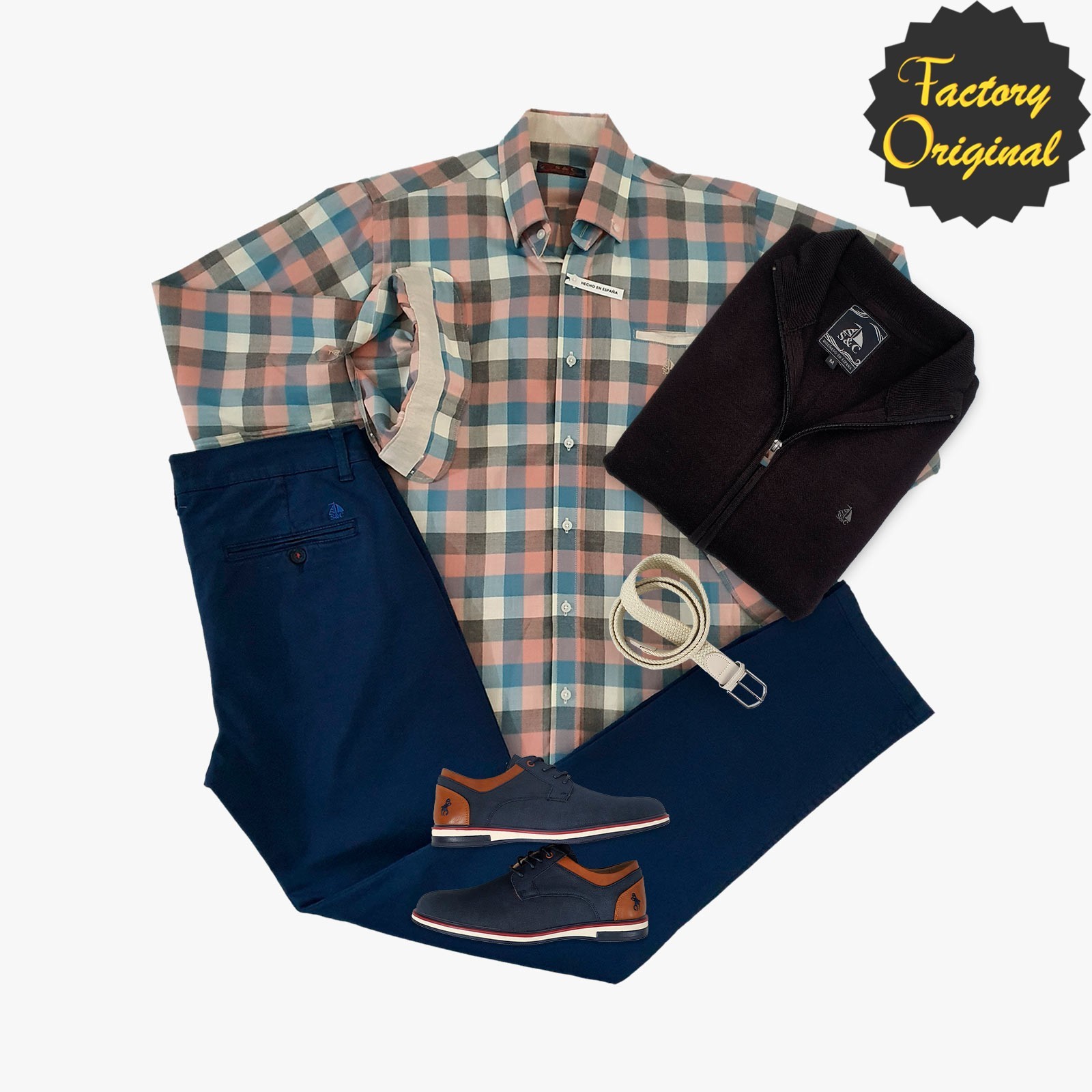 Pack Camisa barco modelo binary pantalon chino barco azul royal rebeca barco negro mocasin perry marino