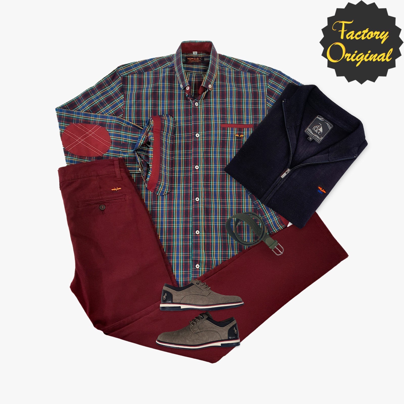 Pack Camisa patriota modelo nasfy pantalon chino patriota granate rebeca patriota marino mocasin perry gris