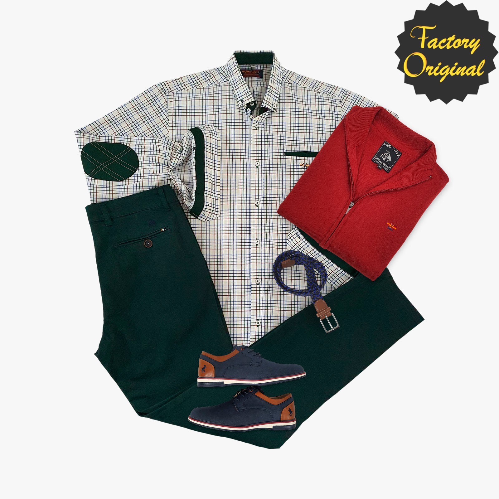 Pack Camisa patriota modelo Emilio pantalon chino verde oscuro rebeca patriota granate mocasin perry marino
