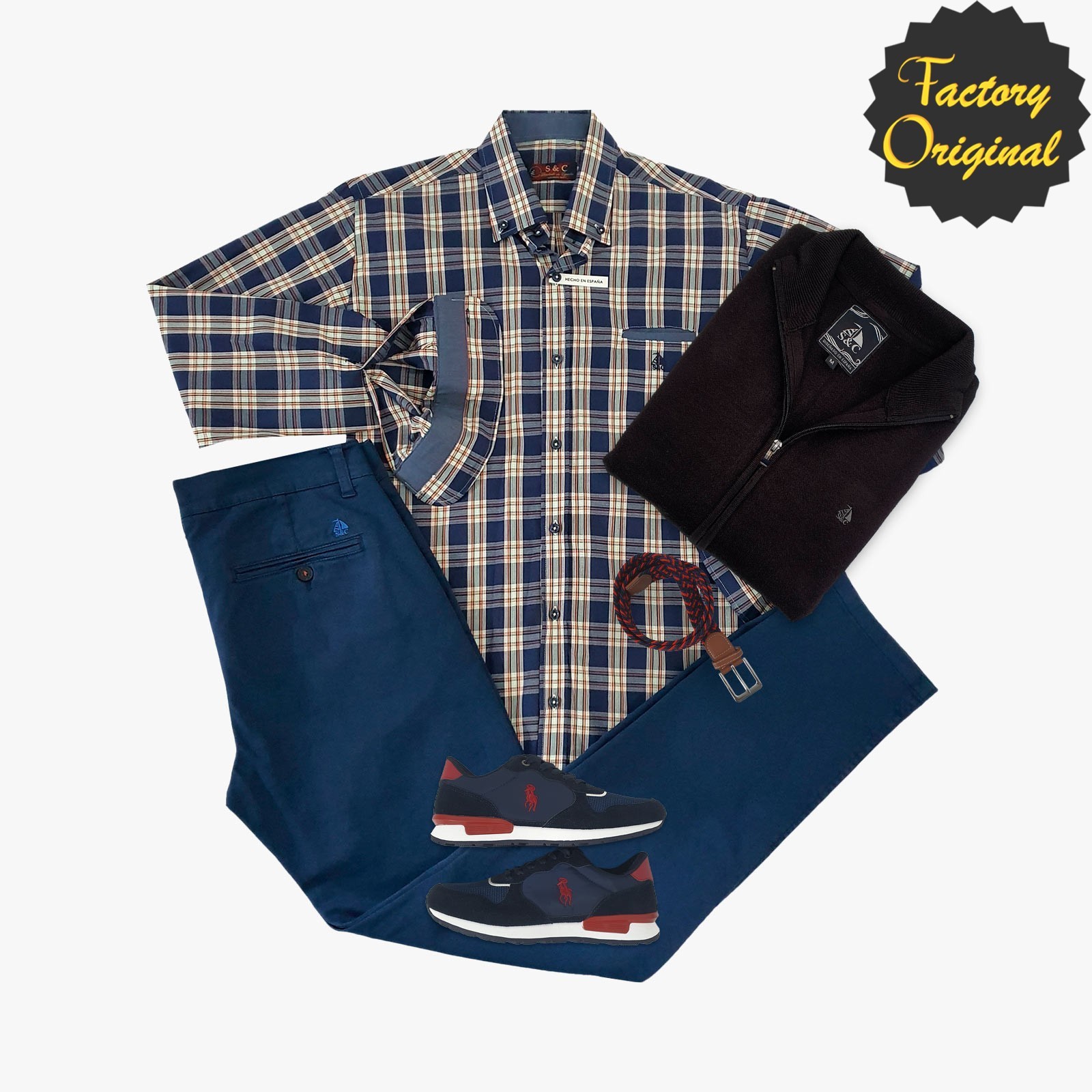 Pack Camisa barco modelo cef azul pantalon chino barco azul royal rebeca barco negro deportivo gijon