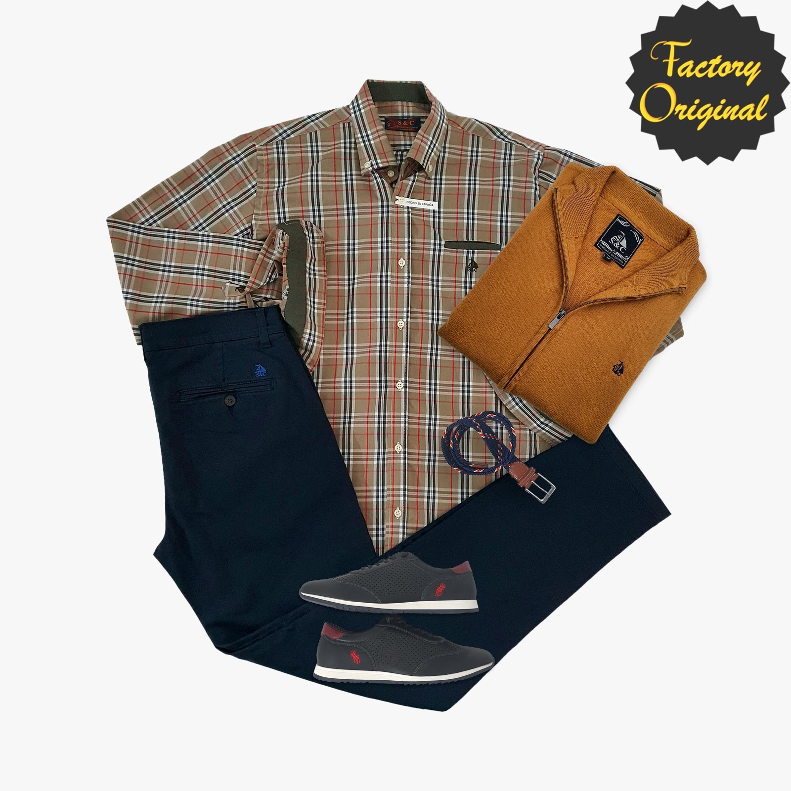 Pack Camisa barco modelo frois pantalon chino barco marino rebeca barco mostaza deportivo oxford negro