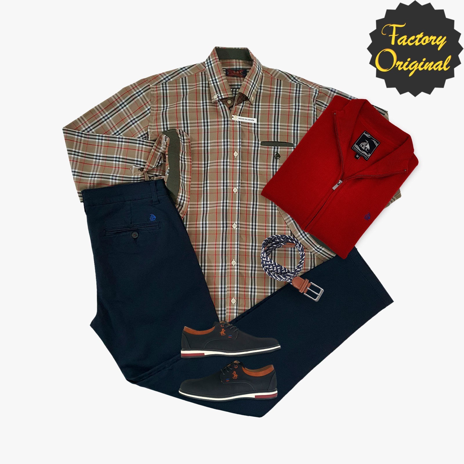 Pack Camisa barco modelo frois pantalon chino barco marino rebeca barco granate mocasin estandar negro