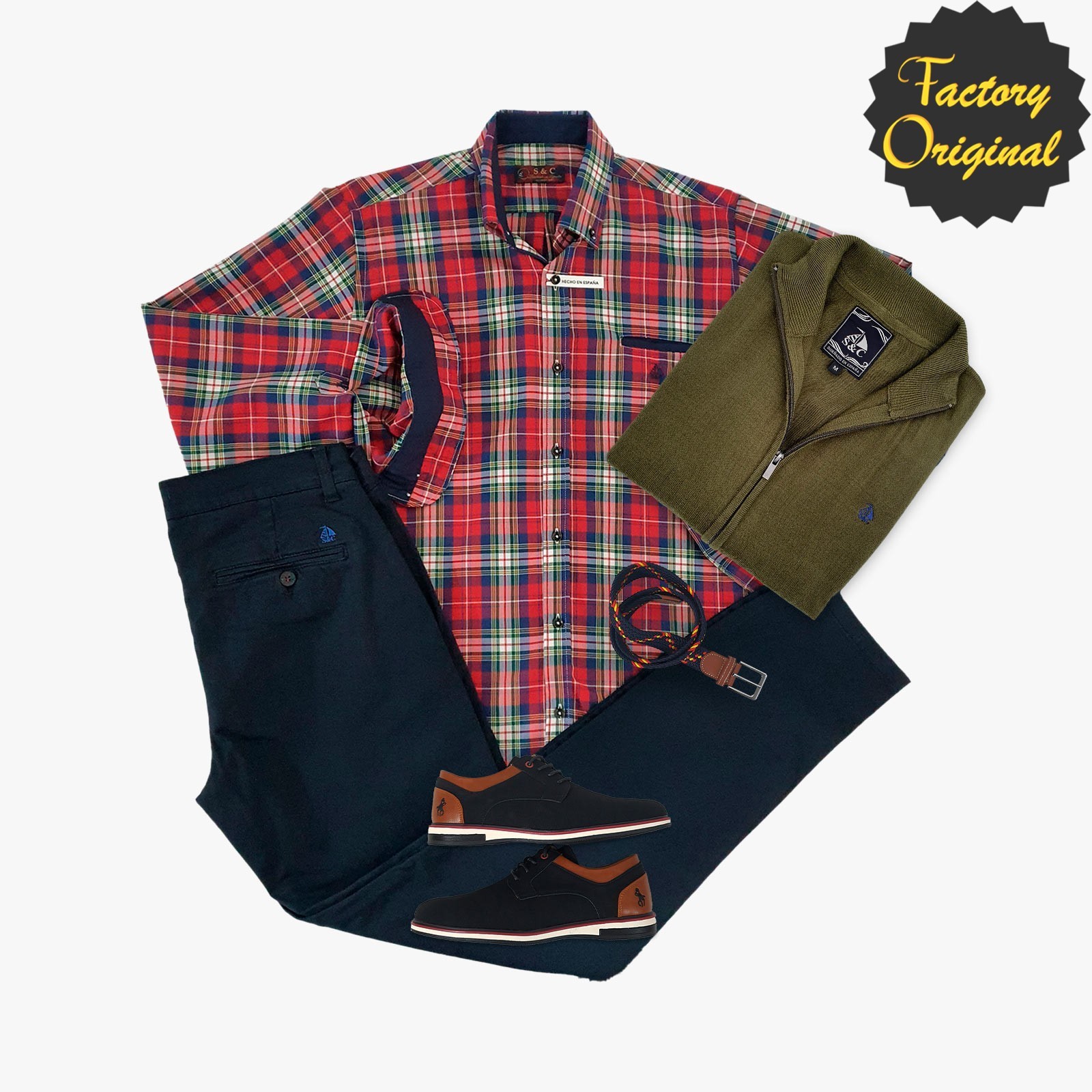 Pack Camisa barco modelo Faisan rojo chino marino rebeca barco khaki zapato negro
