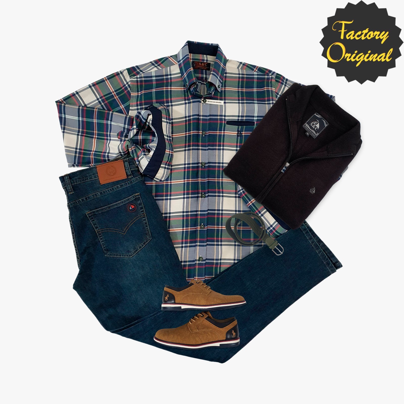 Camisa barco modelo Tail azul Vaquero Ibiza Oscuro rebeca negro zapato camel