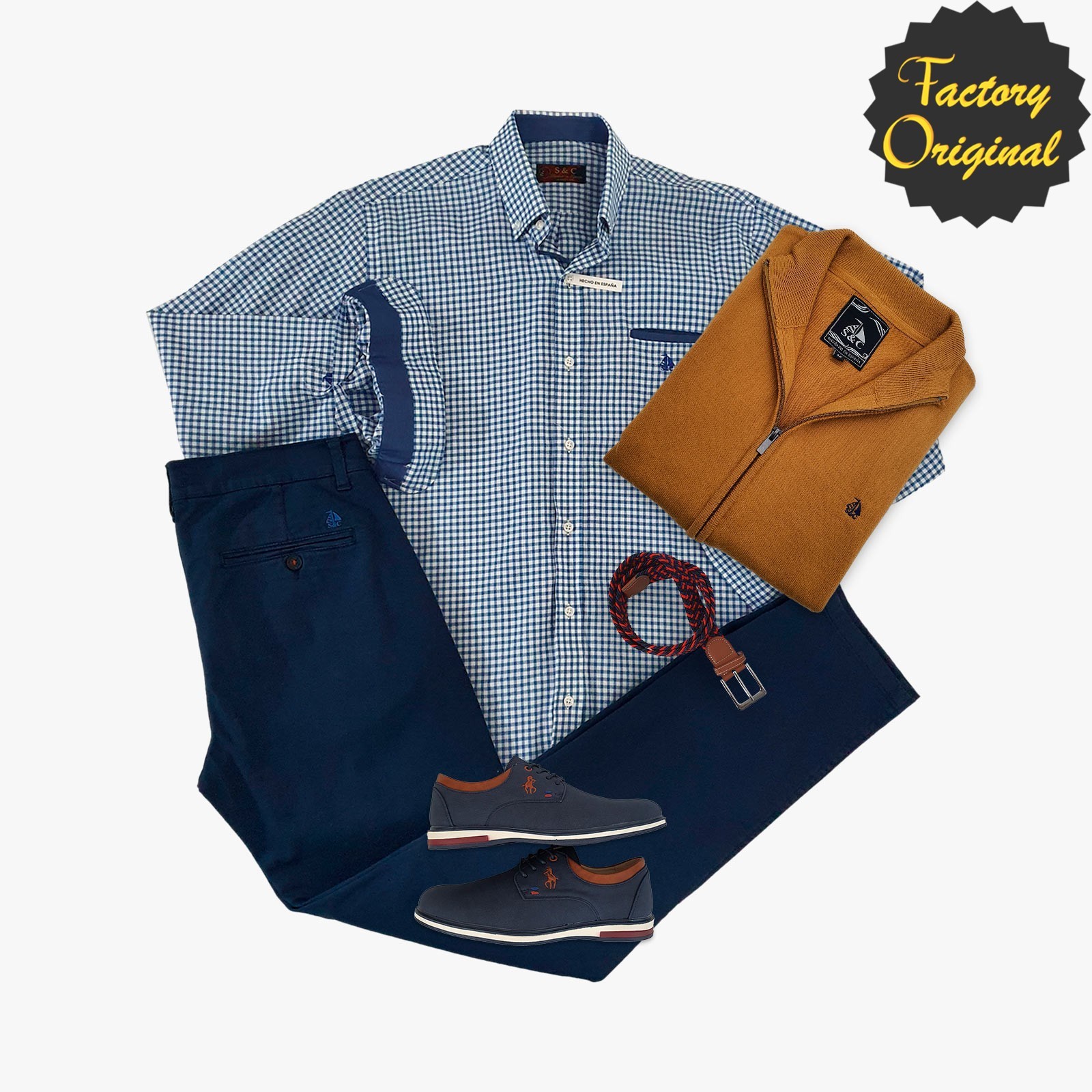 Camisa barco modelo cuadricula marino chino azul royal rebeca mostaza zapato marino