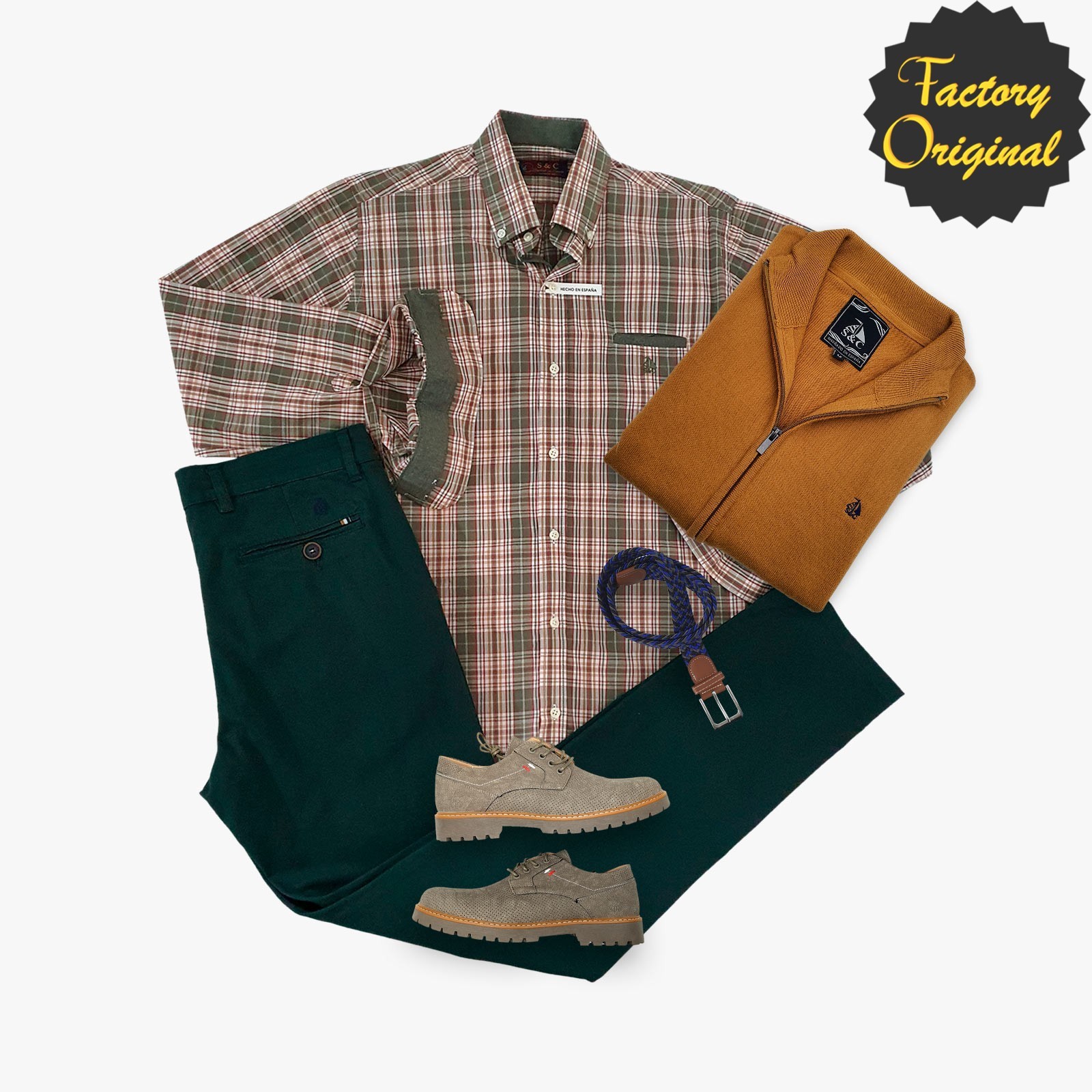 Camisa barco modelo Slav verde chino verde oscuro rebeca Mostaza zapato gris