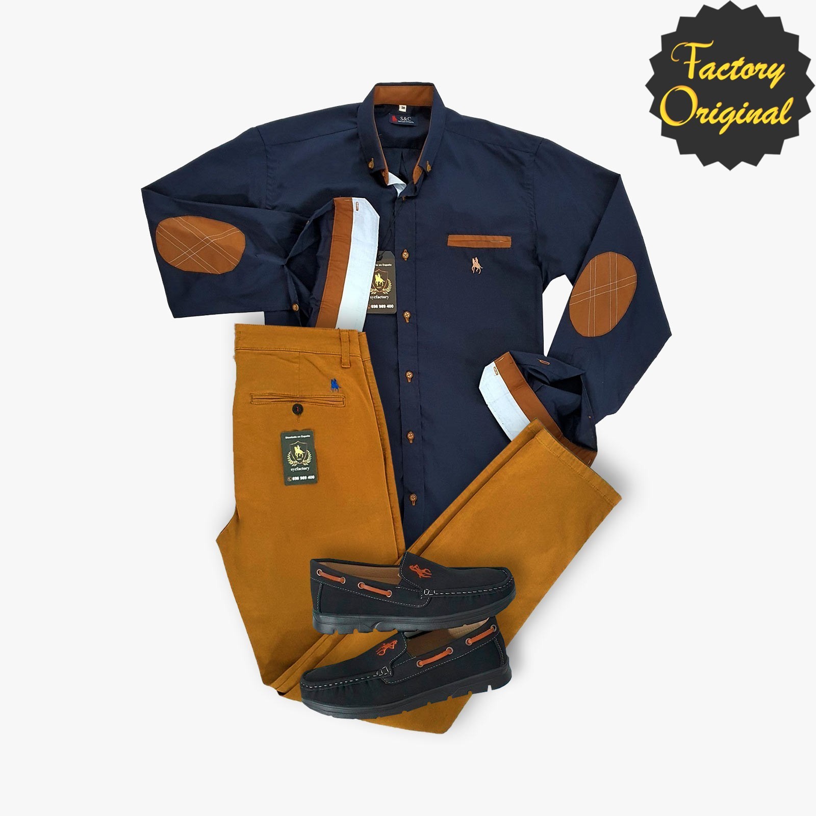 Pack camisa hombre marino con coderas camel pantalón chino camel nautico negro SYC Factory Original