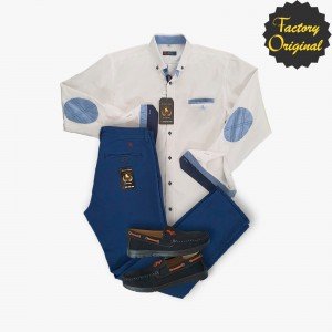 Pack camisa hombre blanca con coderas celeste pantalón chino azul royal náutico negro SYC Factory Original