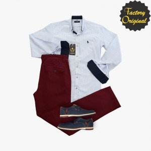 Pack camisa hombre modelo Avila celeste pantalon elástico granate mocasin marino SYC Factory Original