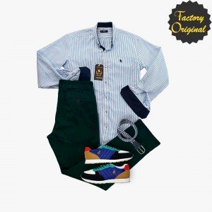 Pack camisa modelo Avila marino pantalón chino elástico verde oliva deportivo premium multicolor